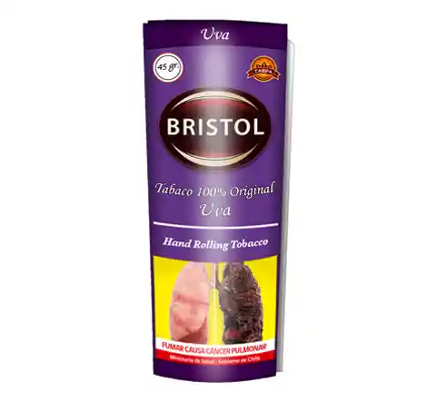Tabaco Bristol Uva 45 g con mezcla aromática de sabor uva. Corte fino para un armado cómodo y una experiencia suave. Presentación de 45 gramos por paquete.