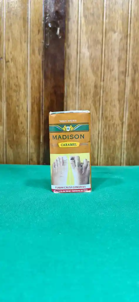 Tabaco Madison es una de las marcas más tradicionales y vendidas en Chile, fabricado en Uruguay esta marca contiene tabaco variedad Virginia, que son tabacos de color amarillo, sabor suave y combustión lenta.