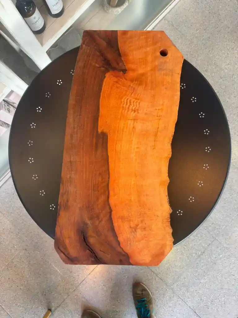 🌲 Tabla Rústica de Asado XL — Donde el fuego no destruye, transforma. Hay objetos que simplemente sirven… y hay otros que cuentan una historia. Esta tabla no nació en un taller. Nació en el corazón de un incendio. En 2022, los bosques de Molina, en la Región del Maule, fueron arrasados por el fuego. Lo que muchos creyeron perdido, nosotros lo vimos como una oportunidad para honrar la resiliencia de la naturaleza. Así surgió esta pieza: madera de roble que sobrevivió a las llamas, rescatada con respeto y transformada con manos artesanas. Cada tabla de asado XL es una pieza única, trabajada lentamente, sin apuro. En ella encontrarás vetas marcadas por el fuego, cicatrices profundas que quedaron como testimonio de lo vivido, y las huellas de las prensas que usamos para volver a darle estructura, forma y propósito. Nada se esconde, todo se revela. Porque esta tabla no busca ser perfecta, busca ser honesta. La usamos para lo que más nos gusta: reunirnos, compartir, celebrar. Por su tamaño y carácter, es perfecta para grandes cortes de carne, para servir a muchos, para transformar un asado en algo inolvidable. Pero también es un recordatorio de que incluso después del desastre, la vida puede volver a surgir con más fuerza, más sentido y más belleza. 🌿 Cuando eliges una de estas tablas, no estás comprando un objeto. Estás trayendo a tu mesa un pedazo de historia, una declaración de conciencia sustentable y un tributo a la tierra que resiste. 📏 Medidas aproximadas: cada tabla es irrepetible.