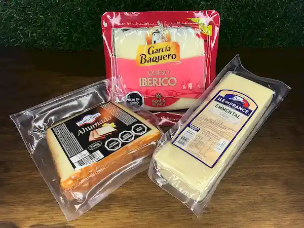 Pack de Quesos Internacionales de Logia Del Queso Que Incluye: Emmental Francés de 200 g. Ahumado Natural de Hungría Pieza de 200 g. Curado de Tres Leches: Oveja, Vaca Y Cabra, Garcia Baquero de España. Cuña 150 .
