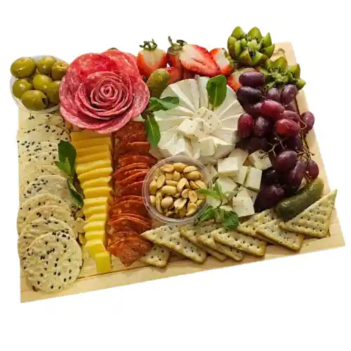 ✨ Tabla de Picoteo Premium ✨ Sorprende en cualquier ocasión con nuestra exquisita tabla de 30×22 cm, perfecta para compartir y deleitarse. Incluye: 🧀 Variedad de quesos finos 🥩 Carnes seleccionadas 🥜 Frutos secos 🍓 Frutas de estación 🍫 Chocolate 🍪 Galletas Entre otros agregados….
