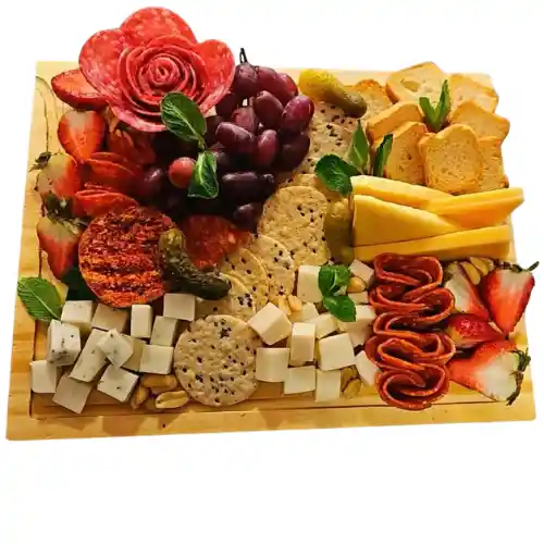 Sorprende en cualquier ocasión con nuestra exquisita tabla de 30×22 cm, perfecta para compartir y deleitarse. Incluye: 🧀 Variedad de quesos finos 🥩 Carnes seleccionadas 🥜 Frutos secos 🍓 Frutas de estación 🍫 Chocolate 🍪 Galletas Entre otros agregados….