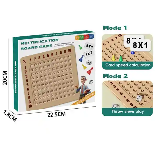 Diviértete aprendiendo con nuestro juego de matemáticas de multiplicacion! ?? Incluye 100 tarjetas , 6 fichas y 1 tablero de madera de 1 cm. Perfecto para que los más pequeños practiquen de manera entretenida y efectiva. Mejora sus habilidades matemáticas mientras juegas. Medidas: 18x18cm caja