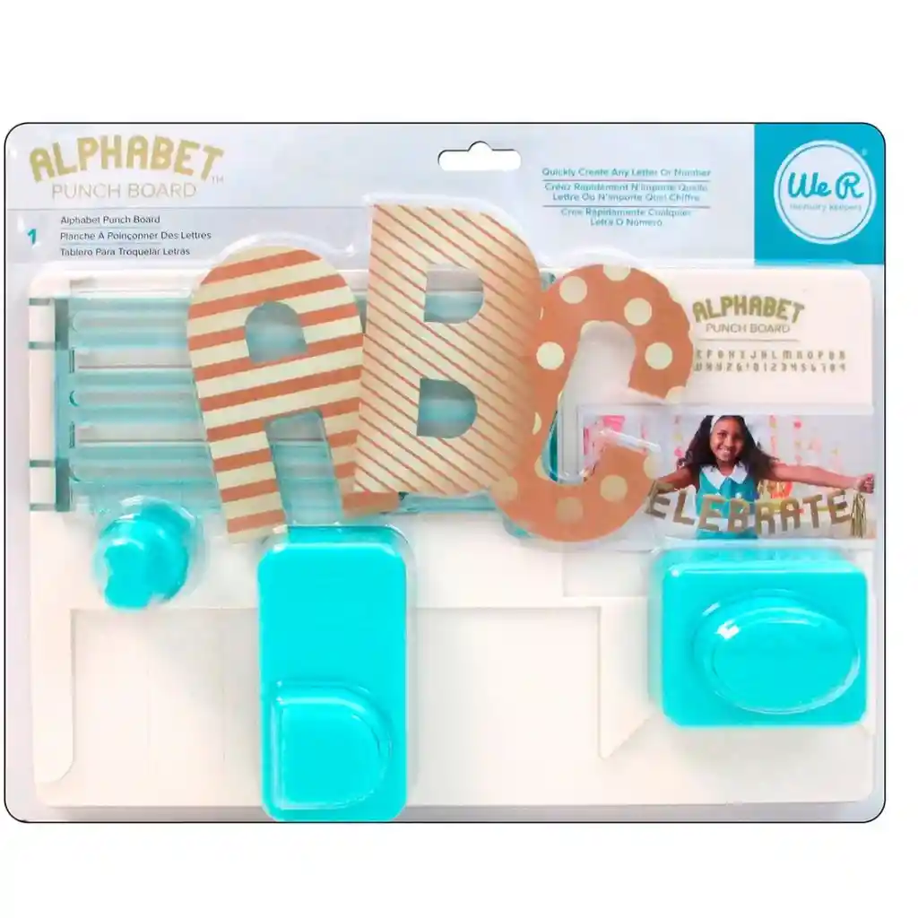 Alphabet Punch Board We R Memory Keepers El último lanzamiento de We R Memory Keepers, con esta Punch Board podremos perforar fácilmente todas las letras del abecedario, así como letras y algunos símbolos. Muy útil para hacer banners de cumpleaños, decoración infantil, títulos para scrapbooking, etc. Sorprende a alguien con un "FELICIDADES" o crea unas iniciales en papel para la portada de un álbum que vayas a regalar. Puedes crear letras clásicas o más decorativas. Se incluye un libro de instrucciones en el que se explica como se hace cada letra. Tamaño de la herramienta: 28,5x18,5 cm. Tamaño de las letras: 3"x5" (7,6x12,7 cm). Para hacer las letras más fácilmente puedes utilizar los papeles Punch Board (ya vienen la tamaño exacto para perforar las letras 7x12 cm).