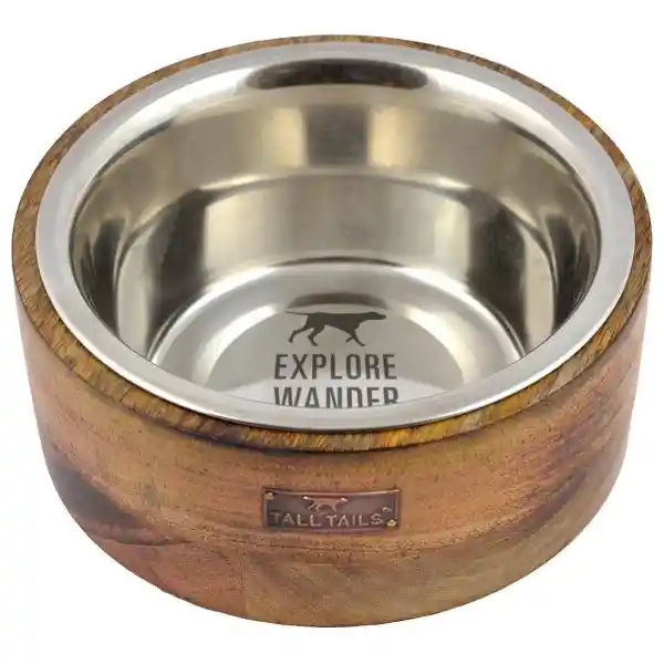 ¡Porque Comer Nunca Había Tenido Tanto Estilo! Este Bowl es Ideal Tanto Para Agua y Comida de Forma Que tu Perro Pueda Comer Cómodamente en un Plato de Acero Inoxidable Ligeramente Elevado Gracias al Elegante Soporte de Madera Rústica. Su Fondo Antideslizante Asegura Que el Bowl Permanezca en su Lugar Incluso Con Los Comensales Más Traviesos. Disponible en 3 Tamaños Distintos el Bowl de Diseño Acero y Madera Tall Tails Encajará Perfecto Con la Sed y Hambre de Cualquier Perro! Características Plato de Acero Inoxidable. Cuenco de Soporte de Elegante Madera Rústica Que Permita Darle al Espacio de tu Hogar un Toque Especial. Diseñado Con Fondo Antideslizante Que Garantiza Que el Plato Permanecerá en su Lugar Incluso Para Los Comensales Más Entusiasmados. Incluye un Revestimiento Interior Que Mantiene el Plato lo Más Higiénico Posible. El Plato de Acero es Apto Para Lavavajillas. Capacidades Plato Pequeño de 1 Taza / 0.35 L de Capacidad. Plato Mediano de 3 Tazas / 0.71 L de Capacidad. Plato Grande de 6 Tazas / 1.42 L de Capacidad.