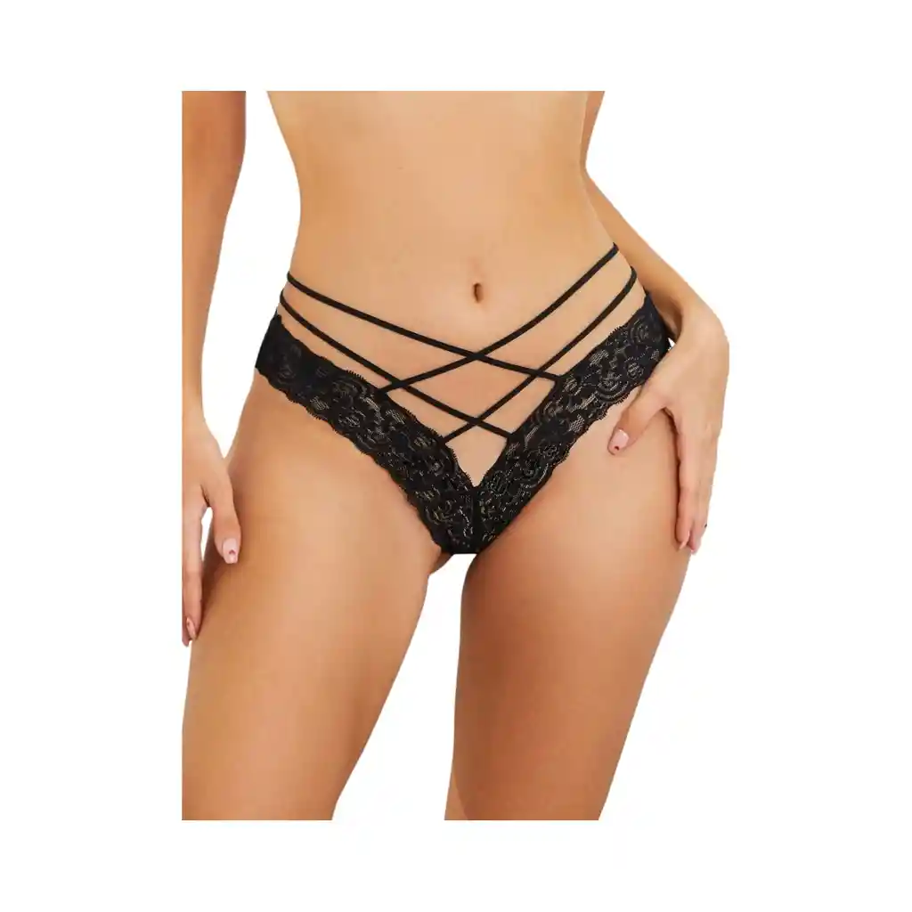 Esta hermosa tanga de encaje es ideal para sorprender! Su delicado diseño de encaje floral enloquece a cualquiera pero son sus tiras cruzadas las que marcan la diferencia. Además el hermoso color negro la convierte en la prenda perfecta para encender tus encuentros. Añádelo a tu colección y atrévete a vivir la sensualidad día a día. CARACTERÍSTICAS: Material: Encaje. Composición: 90% poliamida y 10% elastano Color: Negro Talla: L. Medidas: Talla L: Largo 17,5 cm / Contorno de Cintura: 76 a 106 cm. RECOMENDACIONES: Te recomendamos lavar tu producto a mano, con agua a 30 grados, escurrir suavemente sin estrujar. Dejar secar a la sombra, no planchar ni lavar en seco. No blanquear. ¡ATENCIÓN! Por motivos de higiene y seguridad, y dado que se trata de un producto de uso personal e íntimo, no se realizan cambios ni devoluciones en nuestra lencería erótica. Te recomendamos revisar detalladamente las tallas, medidas y características antes de realizar tu compra para asegurar la mejor elección.