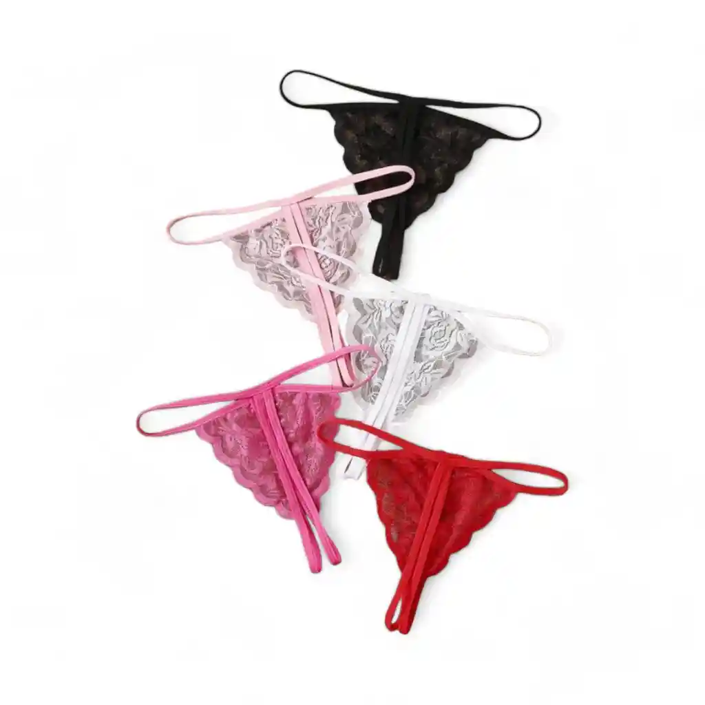 Sexys tangas de corte V, con diseño de encaje floral sin entrepiernas, perfectas para lucir sensual y desbordar de placer. Características: - Contenido: 1 unidad. - Material: Encaje. - Composición: 95% Poliéster / 5% Spandex. - Colores: Negro, Rosado, Blanco, Fucsia y Rojo. (Color al azar) - Talla: Única. - Contorno de cintura: De 62 a 100 cm. Importante: - El color de la tanga se envía al azar. - Lavar a mano. - No limpiar en seco. ¡ATENCIÓN! Por motivos de higiene y seguridad, y dado que se trata de un producto de uso personal e íntimo, no se realizan cambios ni devoluciones en nuestra lencería erótica. Te recomendamos revisar detalladamente las tallas, medidas y características antes de realizar tu compra para asegurar la mejor elección.