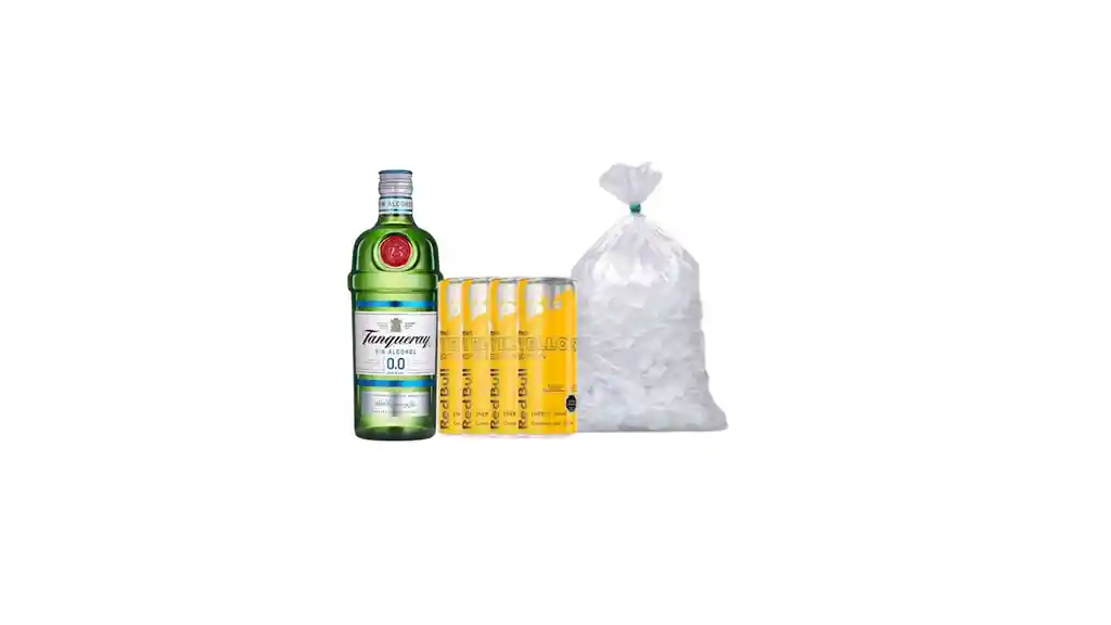 TANQUERAY CERO 700 ML + 4 REDBULL AMARILLA + HIELO 1KG