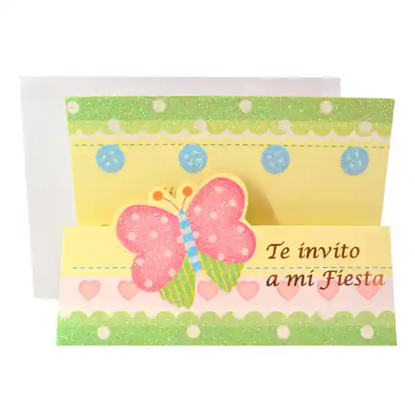 Tarjeta Invitacion Dobla-Troquel Glitter Mariposa 6 Unidades