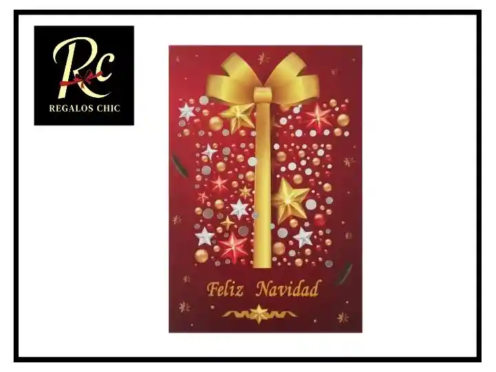 "¡Envía un mensaje que es un regalo en sí mismo! Nuestra Tarjeta de Navidad Premium presenta un diseño de paquete de regalo envuelto en una cinta dorada brillante, con una explosión de estrellas y confeti dorados y rojos sobre un fondo rojo profundo. Es la representación perfecta de la generosidad y el espíritu festivo. La frase ""Feliz Navidad"" destaca con un acabado premium y lujoso, haciendo que esta tarjeta sea ideal para expresar gratitud y buenos deseos a clientes especiales, amigos o familiares. Este diseño es elegante, llamativo y 100% fotogénico. Características y Beneficios Clave: Diseño Lujoso: Gráfico de regalo dorado con estrellas que simulan un envoltorio festivo. Acabado Premium: Impresión de alta calidad con texto ""Feliz Navidad"" en un estilo elegante. Impacto Visual: Fondo rojo intenso que garantiza que tu tarjeta destaque. Ideal para Todos: Perfecta para mensajes personales o corporativos de fin de año. El Gancho de Venta: El elemento ""Chic"" y memorable que convierte tu simple deseo en un verdadero Regalo Chic. ¡Haz que tus mensajes de Navidad brillen! Añade ahora esta Tarjeta de Regalo Dorado y eleva tus felicitaciones. ¡Solo en Regalos Chic! Tarjetas de Navidad Diseño Regalo Comprar Tarjetas Feliz Navidad Lujo Postales Navideñas Elegantes Doradas Tarjetas para Clientes Fin de Año Venta de Tarjetas Diseño Lazo Dorado Regalos Chic Tarjetería Tarjetas de Saludo Empresariales Mensajes de Navidad Premium Tarjetas Navideñas Fondo Rojo Papelería Festiva Lujosa Tarjetas Nochebuena Elegantes"