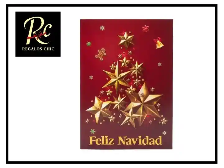 "¡Envía tus mejores deseos con un toque de lujo y elegancia! Nuestras Tarjetas de Navidad Premium son la forma perfecta de expresar tu cariño durante la temporada festiva. El diseño presenta un majestuoso árbol de Navidad formado por estrellas doradas brillantes sobre un fondo rojo profundo, un clásico atemporal que evoca inmediatamente el espíritu navideño. La frase ""Feliz Navidad"" grabada en dorado aporta un acabado premium que tus seres queridos apreciarán. Ideales para enviar a clientes, amigos o familiares, estas tarjetas elevan la calidad de tu mensaje. Características y Beneficios Clave: Diseño Majestuoso: Árbol de estrellas doradas sobre fondo rojo, altamente festivo y visualmente chic. Acabado Premium: Impresión de alta calidad con texto ""Feliz Navidad"" en dorado. Mensaje Atemporal: La forma perfecta de conectar con clientes y seres queridos durante las fiestas. Listas para Enviar: Incluye el sobre (generalmente). El Gancho de Venta: El elemento ""Chic"" y sentimental que garantiza que tu deseo de Navidad sea memorable y destaque entre el correo. ¡No dejes que el espíritu navideño pase desapercibido! Añade ahora estas Tarjetas Premium y entrega mensajes con estilo. ¡Solo en Regalos Chic! Tarjetas de Navidad Doradas Comprar Tarjetas Feliz Navidad Postales Navideñas Elegantes Tarjetas para Clientes Navidad Venta de Tarjetas Diseño Estrellas Regalos Chic Tarjetería Tarjetas de Saludo Festivas Mensajes de Navidad Empresariales Tarjetas Navideñas Fondo Rojo Papelería Navidad Premium Pack de Tarjetas de Fin de Año"