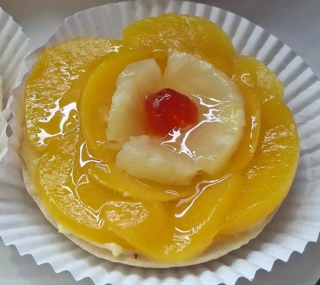 Maravillosa tartaleta individual, de frutas durazno y piña