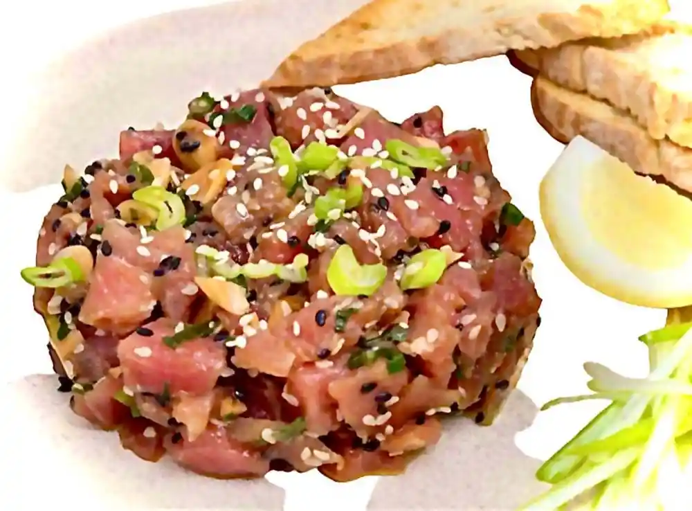Este tártaro esta hecho en base a cubos pequeños de atún, bañados en una salsa que incluye soya, limón y aceite se sésamo. De sabor exótico y refrescante. ¡Preséntalo sobre una cama de palta y sorprende a tus invitados! ¿Te gustan los sabores del mar? Entonces no puedes dejar de probar este exquisito Tártaro de Atún que te hará sentir como si estuvieras en la playa. 🌊 Este producto esta elaborado con atún fresco de primera calidad, procedente de las costas chilenas. El atún se corta en trozos pequeños y se mezcla con una salsa especial a base de soya, limón, jengibre y aceite de sésamo. Además, contiene almendras, azúcar rubia, cebollín, sésamo negro y blanco, y sal de mar. Esta salsa le da un toque exótico y refrescante al Tártaro de Atún, que resalta su sabor suave y delicado. 😋 Es ideal para disfrutar como aperitivo o como plato principal. Puedes servirlo sobre unas tostadas crujientes, sobre una ensalada verde o sobre una cama de palta. ¡Las combinaciones son infinitas! 🥑🥗🍚 El Tártaro de Atún es saludable y nutritivo, que aporta proteínas, omega 3 y vitaminas. Además, es bajo en grasas y calorías, por lo que es perfecto para cuidar tu figura y tu corazón. ❤️