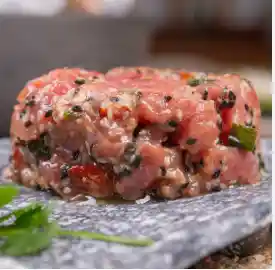 Tártaros preparados de forma artesanal con los mejores ingredientes, libres de preservantes quimicos Ingredientes naturales. Descongelar por 10 a 15 minutos en agua fría y listo para consumir. Ingredientes: Atún, aceite de canola, almendras, cebollín, azúcar rubio, salsa de soya, aceite de sésamo, limón, sésamo blanco y negro, jengibre y sal de mar.