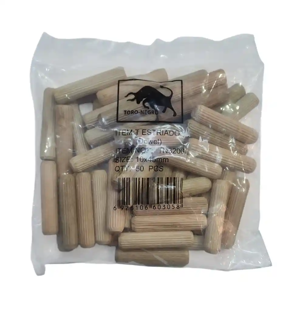 Tarugos de madera estriados Medida: 10 x 45 mm Cantidad 50 unidades