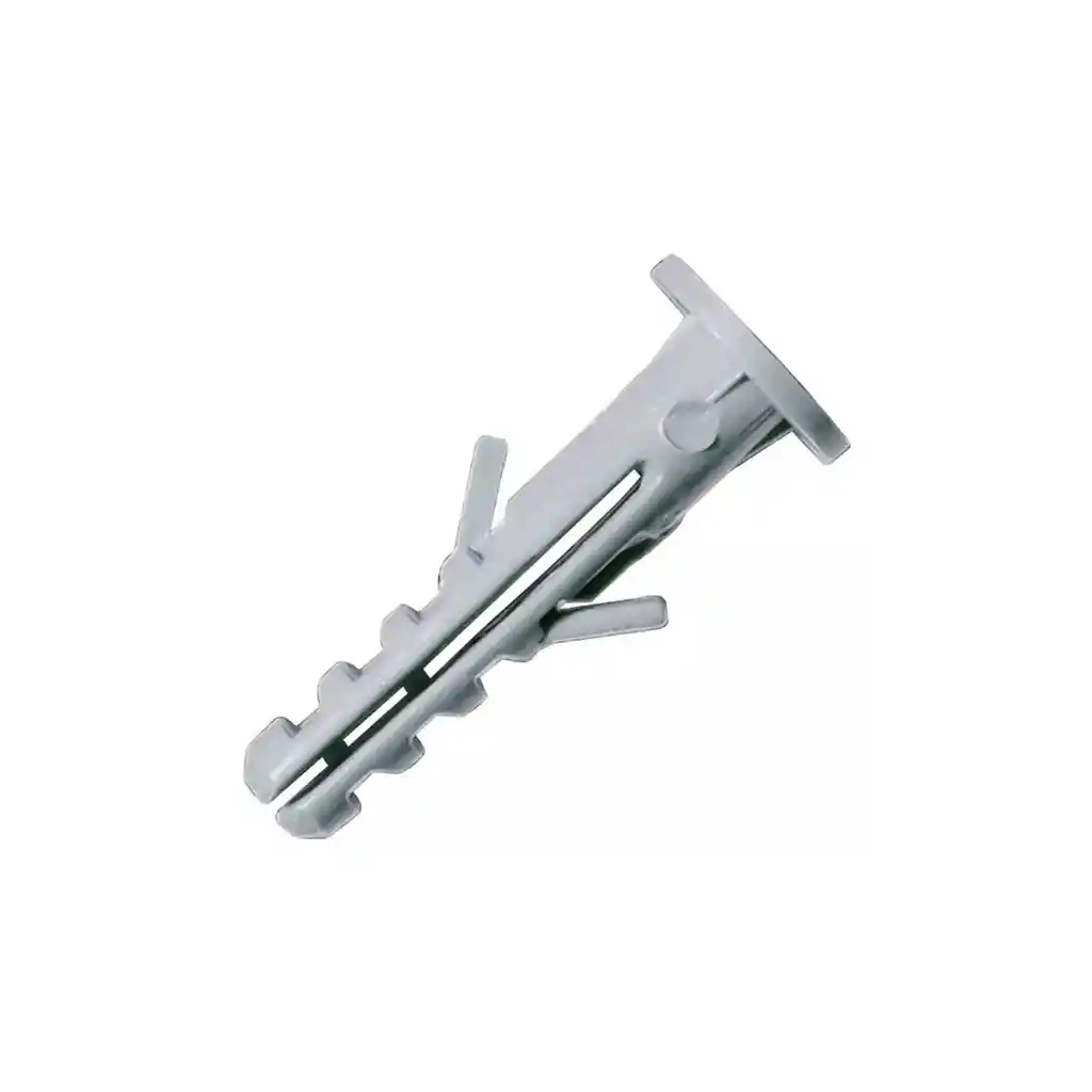 Tarugo Nylon con tope 6mm x 100un. Apto para paredes y techos de concreto o ladrillo. El tope impide que la fijacion se desplace hacia el interior del agujero otorgando una fijacion mas confiable. Permite una buena presentacion al finalizar el trabajo ya que el tope oculta la perforacion