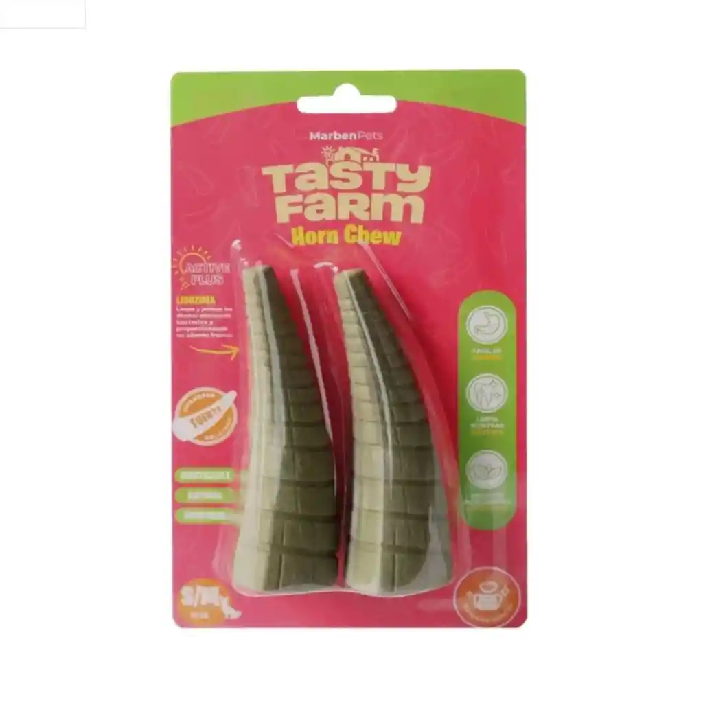 Snack Masticable Cuerno – Cuidado Dental S/M – Tasty Farm Ideal para perros pequeños y medianos | Salud dental y bienestar integral Descubre Horn Chew de Tasty Farm, el snack masticable natural diseñado para mantener a tu perro entretenido mientras cuida su salud. Elaborado a base de cuerno, este producto es más duradero que otros masticables comunes, ayudando a satisfacer el instinto natural de masticación. Beneficios clave: 🦷 Cuidado dental: Ayuda a limpiar los dientes de forma natural y reducir la acumulación de sarro. 🦴 Soporte articular: Contribuye al bienestar de las articulaciones. ✨ Refuerzo de colágeno: Apoya la salud de piel, pelo y cartílagos. 🛡️ Fortalecimiento del sistema inmune. Un snack funcional, sabroso y saludable para perros de tamaño pequeño a mediano. ¡Ideal para quienes buscan una opción nutritiva y duradera!