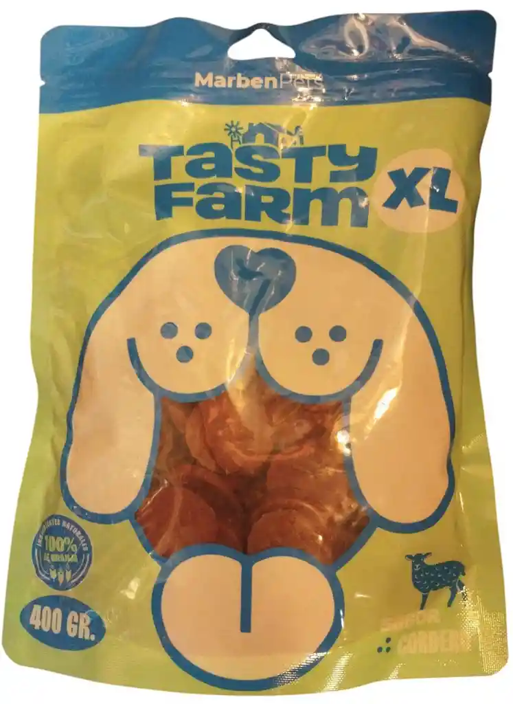 Descripción Los Medallones de Cordero Tasty Farm son un snack 100% natural diseñado para perros, elaborado con carne de cordero de alta calidad. Este producto es una excelente fuente de proteínas y grasas saludables, esenciales para mantener la energía y vitalidad de las mascotas. Gracias a su textura y su sabor irresistible, estos medallones son ideales como premio durante el entrenamiento o como complemento a la alimentación diaria de los perros. Al ser un alimento deshidratado, conserva sus nutrientes esenciales sin necesidad de aditivos artificiales ni conservantes, lo que lo convierte en una opción segura y saludable para perros de todas las edades y tamaños. Además de su alto contenido proteico, el cordero es una carne hipoalergénica, lo que hace que estos medallones sean adecuados para perros con sensibilidades alimentarias o alergias a proteínas más comunes, como el pollo o la res. Su presentación en medallones facilita la dosificación y el almacenamiento, permitiendo a los dueños ofrecer un snack nutritivo y delicioso sin complicaciones. Los Medallones de Cordero Tasty Farm son producidos bajo estrictos controles de calidad para garantizar un producto premium, libre de subproductos o ingredientes artificiales. Este snack no solo proporciona un placer culinario para las mascotas, sino que también contribuye a su bienestar general, promoviendo una alimentación más natural y balanceada. INGREDIENTES Cordero y derivados Almidón de maíz Glicerina Sorbitol – Proteína de soja Sal Sorbato potasico ANALISIS GARANTIZADO Proteina: 30% Grasa: 8% Ceniza: 6,5% Fibra: 1,7% Humedad: 18%