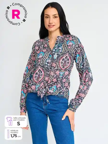 Tatienne Blusa Manga Larga Dobbit Azul XL S25