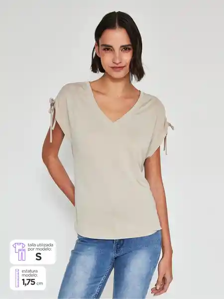 Tatienne Polera Manga Corta Emodal e Color Beige L V25