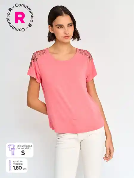 Tatienne Polera Manga Corta Estud e Color Coral L V25
