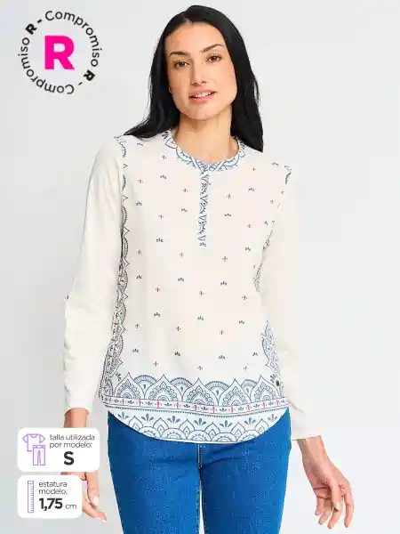 Tatienne Polera Manga Larga Drago Ttn Ess Ecru L S25
