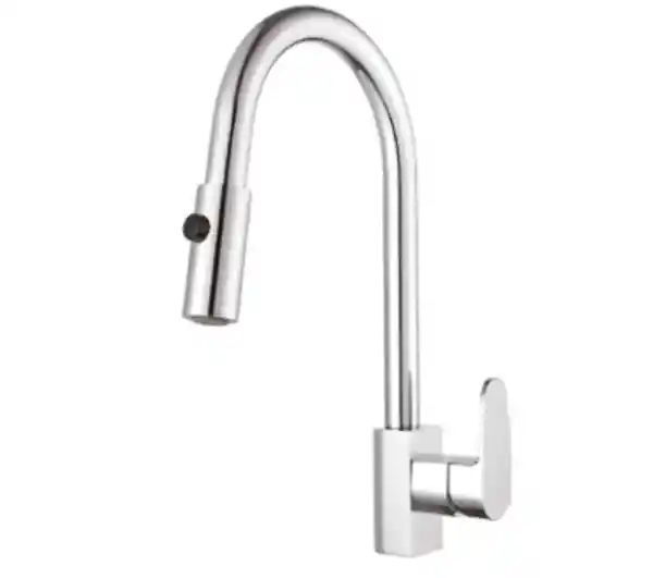 Monomando Lavaplato Vertical Dusseldorf Cromado. Flexible Retráctil. Cuerpo de Latón Cromado. Manilla de Zamak Cromado. Aireador Chorro Espumante Camisa Metálica