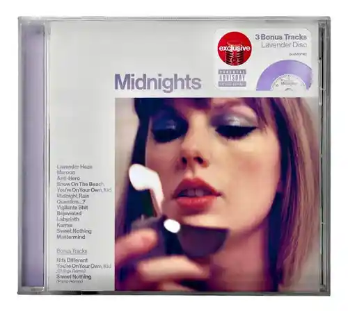 Versión 1. Moonstone Blue (Clean Edition) sin detalles, en perfectas condiciones. Versiones 2, 3, 4 y Target con detalle estético (pequeños quiebres en la caja acrílica), detalle en ultimas fotos de cada variante. Incluye caja de reemplazo, del mismo tipo y calidad gratis. El álbum Midnights de Taylor Swift, lanzado el 21 de octubre de 2022, cuenta con múltiples ediciones especiales en CD, cada una con características únicas que ofrecen una experiencia coleccionable para los fanáticos. Con una mezcla de géneros como pop y synth-pop, este álbum refleja las noches más introspectivas de Swift, con canciones que exploran emociones profundas y momentos de vulnerabilidad. Características Destacadas: • Formato: CD • Lanzamiento: 21 de octubre de 2022 • Productores: Jack Antonoff, Taylor Swift • Versiones Disponibles: • Versión 1 (Moonstone Blue Edition): Incluye arte exclusivo y un disco en color mármol azul. • Versión 2 (Jade Green Edition): Con un diseño de disco en verde mármol. • Versión 3 (Blood Moon Edition): Disco en color rojo mármol. • Versión 4 (Mahogany Edition): Disco en color marrón mármol. • Edición Target (Lavender Edition): Incluye tres pistas adicionales exclusivas y un diseño especial en color lavanda . Lista de Canciones (Ediciones Estándar y Target): 1. Lavender Haze 2. Maroon 3. Anti-Hero 4. Snow On The Beach (feat. Lana Del Rey) 5. You’re On Your Own, Kid 6. Midnight Rain 7. Question…? 8. Vigilante Sh*t 9. Bejeweled 10. Labyrinth 11. Karma 12. Sweet Nothing 13. Mastermind Pistas Adicionales (Exclusivas de la Edición Target): 14. Hits Different 15. You’re On Your Own, Kid (Strings Remix) 16. Sweet Nothing (Piano Remix) . Cada edición cuenta con un libreto con fotos inéditas y las letras de las canciones, lo que hace que estas versiones sean altamente coleccionables.