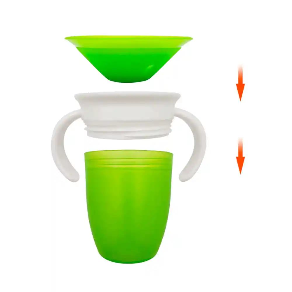 Material: PVC libre de biopolimeros + silicona libre de BPA. Género: Niña / Niño. Color: Verde Tamaño: 10,5 x 8 cm aprox. Capacidad: 240 ML aprox Contenido: 1 Vaso Antiderrame. El diseño del vaso permite tomar líquidos por todo el borde sin derrames. El vaso posee asas que permiten que sea fácil de manipular por el niño. Vaso de entrenamiento recomendado por dentistas.