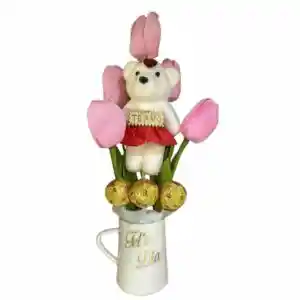 Taza de 5 Tulipanes Eternos, Peluchito y 3 Bombones