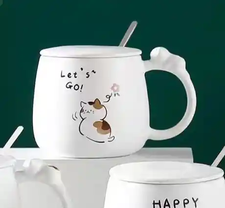 Taza de cerámica diseño de gatito de manchitas con tapa y cucharita. Estas tazas de cerámica será ideal para regalar y coleccionarlas en tu variedad de tazas! Podrás disfrutar de tu té divertidamente. Disponibles en 4 modelos! Material: Cerámica Capacidad: 430ml Medidas: Alto: 8.4cm Profundidad: 8.4cm Largo: 8.4cm