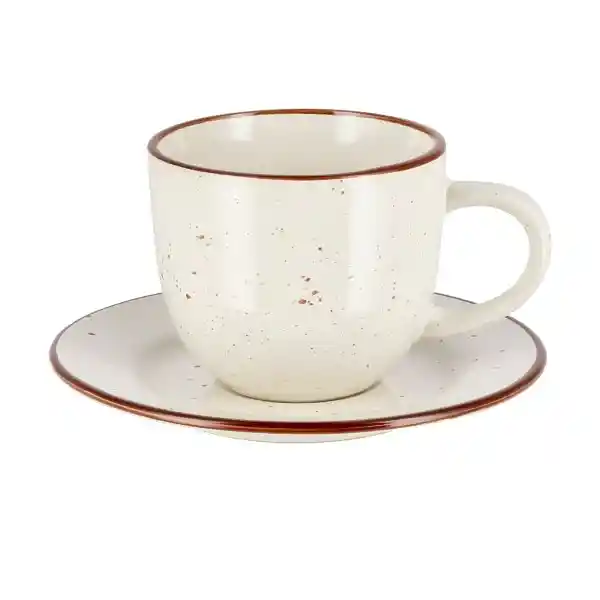 Taza de té y Plato de Cerámica Stoneware Pintada Con Look Rústico. Complementa Este Producto Con Nuestra Colección de Loza Rústica. Cuenta Con Una Capacidad de 220 ml.