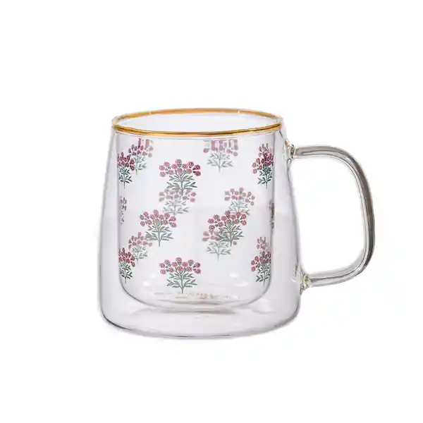 Eleva tu Experiencia! Nuestra Taza Doble Vidrio de Borosilicato Con Exclusivo Diseño de Flores Doradas. Ideal Para Disfrutar en Tus Momentos de té. Consigue la Tuya!.