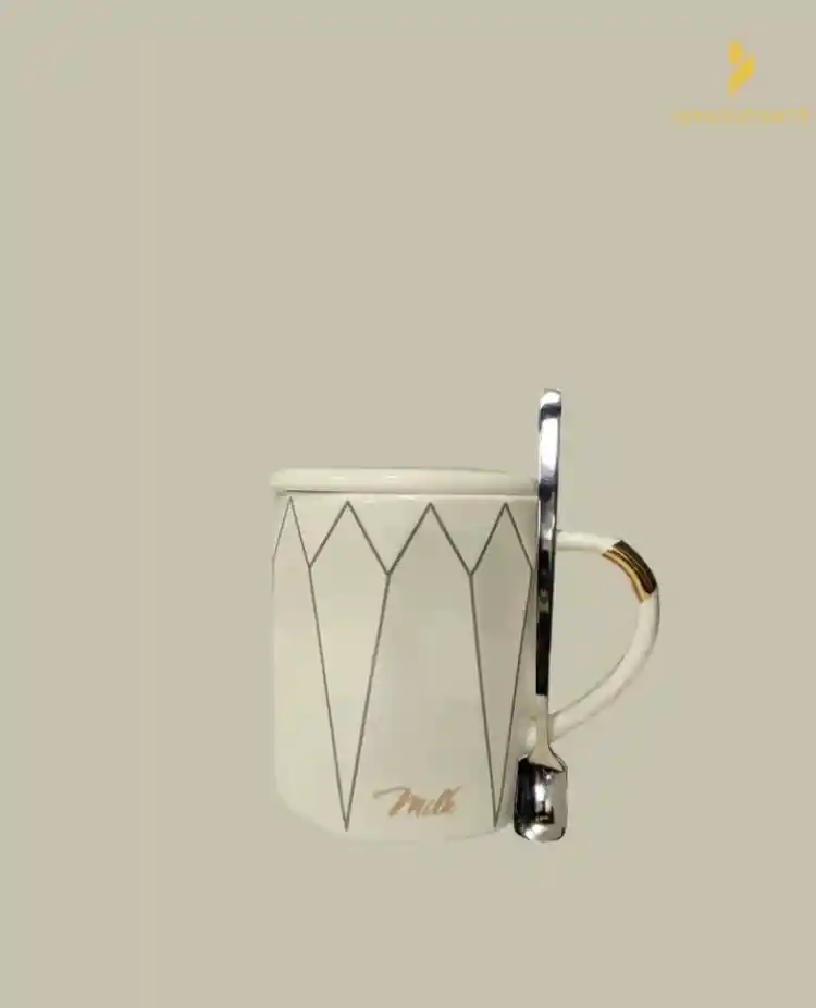 Hermoso tazón con delicado y moderno diseño de lineas, incluye la tapa, que te ayudará a mantener el calor de tus infusiones, también incluye cuchara. Disponible en color negro o blanco.