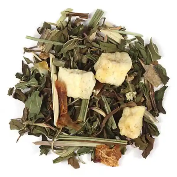 Menta Equinácea Trozos de Manzana Naranja Eucalipto Hierba de Limón Esencia Natural de Naranja y Bayas de Enebra.