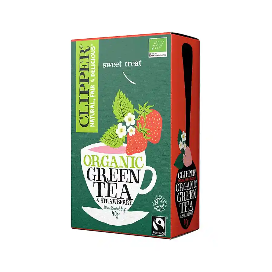 Un té verde orgánico de comercio justo, ligero y limpio, complementado y exquisitamente equilibrado con el dulce sabor de la fresa. Un dulce rico en antioxidantes naturales y flavonoides que protegen el organismo y ayudan a perder peso como parte de una dieta equilibrada y saludable. Elaborado con hojas de té mixtas. Clipper garantiza productos de comercio justo, de alta calidad y de fuentes estrictamente seleccionadas sin añadir conservantes, colorantes ni ningún procesamiento químico. Contiene 20 sobres sin blanquear.