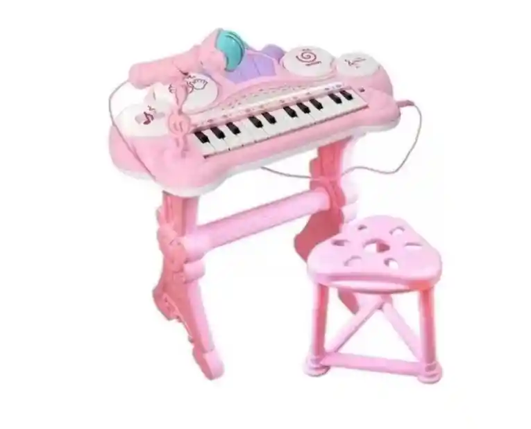 Teclado Electrónico Piano para Niños Musical con Micrófono Mini Piano: -24 teclas. -8 de percusión -4 de instrumentos musicales . -22 canciones de demostración. -Luces LED para orientar el aprendizaje. -Tiene función de grabación y reproducción. -Diversos volumenes y ritmos, se puede conectar con cable y reproducir MP3 . - Incluye un Micrófono para que el niño en el juego, ejercite la coordinación mano - ojo, contribuye al desarrollo auditivo, la formación de la memoria, la cognición con respecto a la Teoría de la Música, el cultivo del equilibrio y desarrollo de una rica imaginación llena de emociones. -La Función de Grabación y reproducción ayuda a que el niño aprenda mejor. -Pulse la tecla "REC", y luego la tecla del piano, puede grabar 40 notas , hasta que se termine y luego pulsa "REPLAY" para escuchar el sonido que acaba de grabar. - Innovador y educativo muy divertido para los niños pequeños y niños de 3-6 años . -Diseñado para que sea seguro y duradero . -Batería: utiliza 4 pilas AA (NO Incluidas). Medidas: 59cm Alto x 41cm Largo x 21 cm Ancho