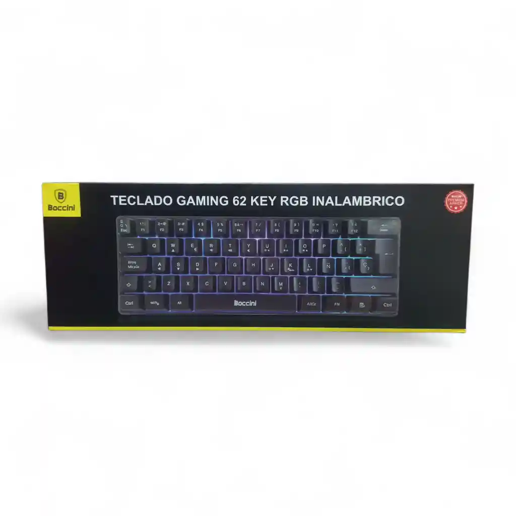 Teclado gaming inalámbrico Boccini 62 teclas con iluminación RGB, diseño compacto y alto rendimiento para una experiencia cómoda y eficiente.