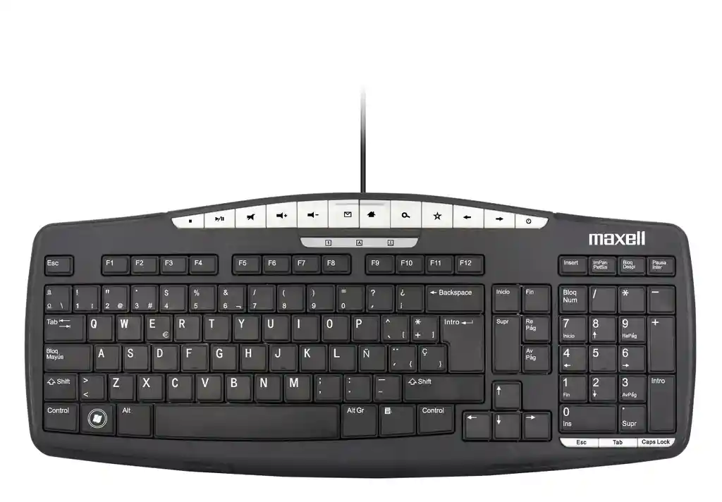 Teclado Multifuncional Maxell KB-100 Conector Usb Negro Teclado multifuncional con pad numérico y teclas de comandos directos. Teclas de comando directo en la parte superior para accesos directos y funciones multimedia. Teclas sensibles para velocidad y comodidad. Entrada conector USB. Soporte de inclinación. Orificios de drenaje para accidentes o derrames de líquidos sobre el mismo. Compatible con MAC y Windows Teclado Multifuncional Teclado con puerto USB.
