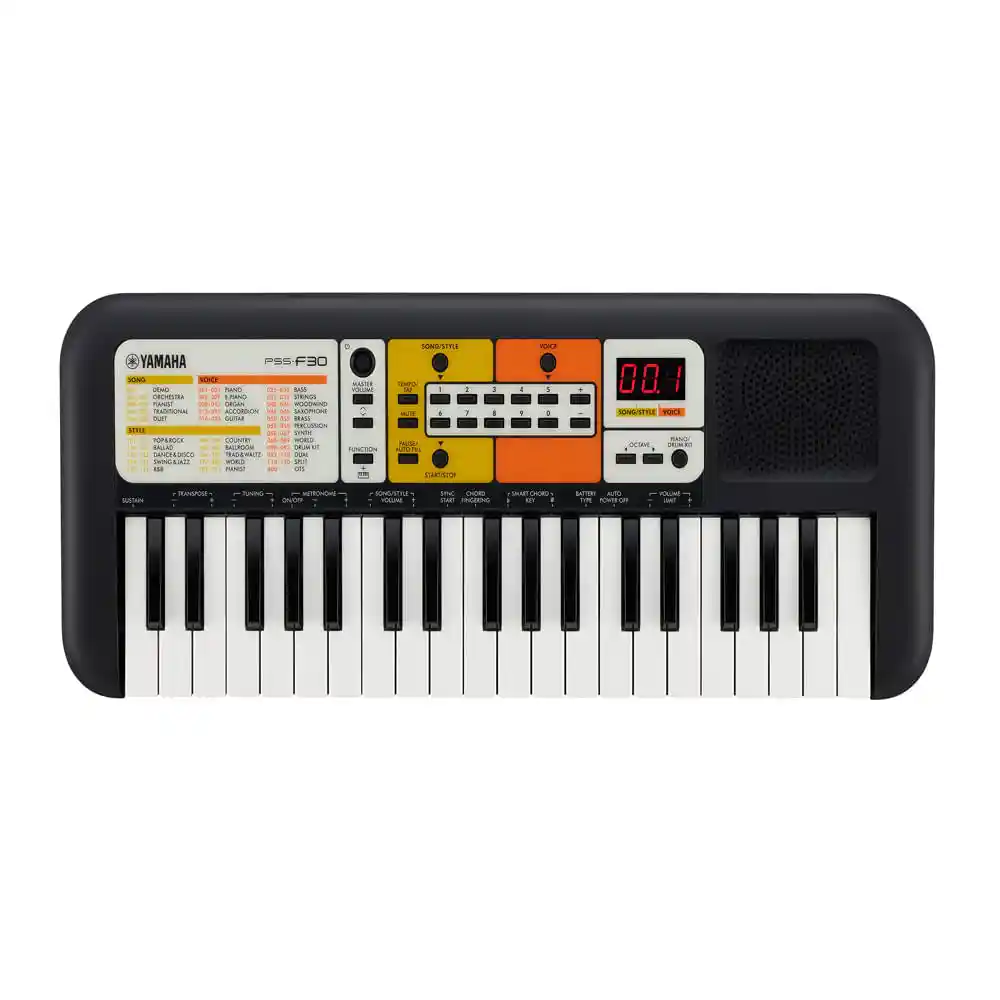 Todo lo que su hijo necesita para comenzar a tocar. Teclas en miniatura de alta calidad. 120 Voces (instrumentos). 114 Estilos de auto-acompañamiento con función Smart Chord. 20 Canciones incorporadas. Libro de partituras digital gratuito. Ligero y compacto. Altavoces incorporados / Jack de auriculares. Funcionamiento con pilas o batería USB (la batería externa USB se vende por separado).