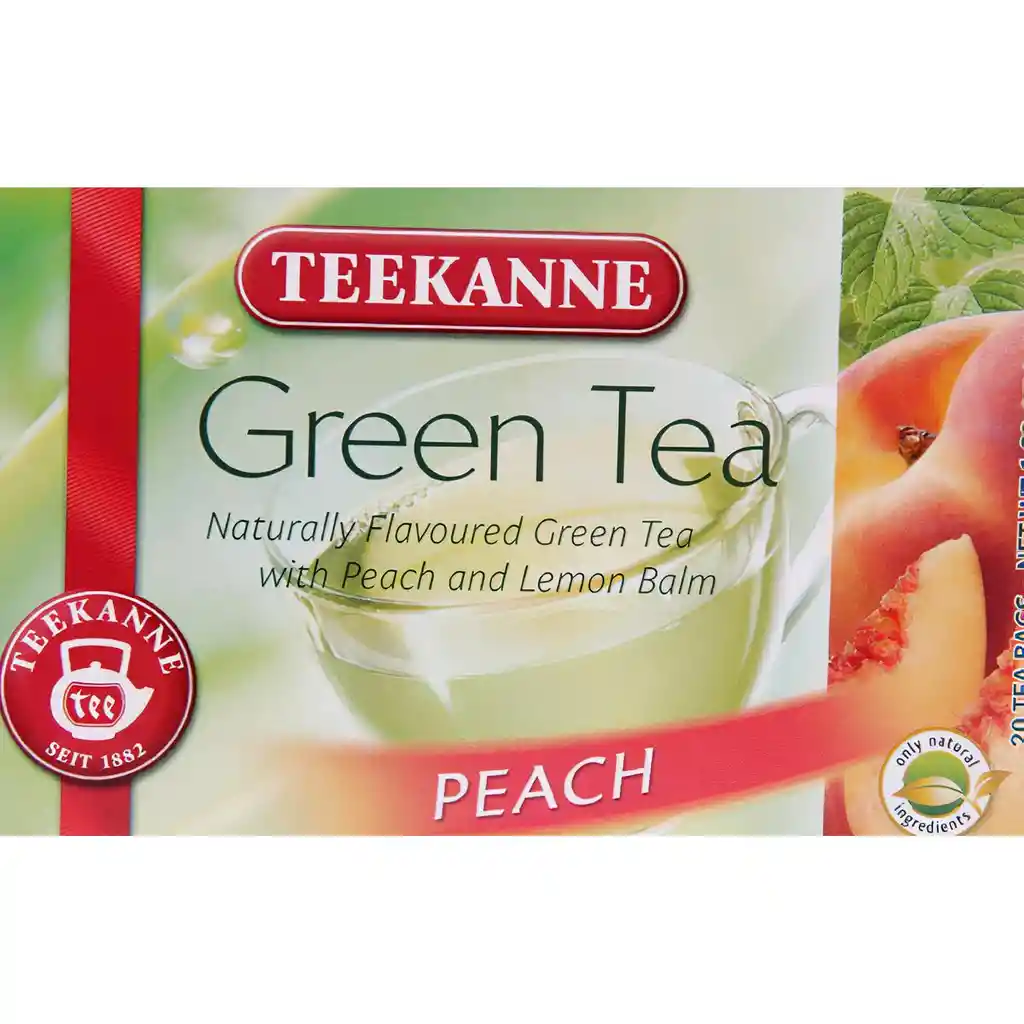 Saboree el sabor excepcional y el poder vigorizante de Teekanne Green Tea Peach. Con raíces tradicionales en China, el té verde se conoce desde hace miles de años como una fuente de bienestar. Esta agradable especialidad de té combina el fino sabor de las hojas de té verde seleccionadas con un sabor afrutado de melocotón. packing: Caja