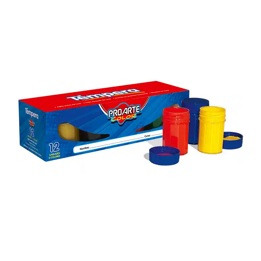 Set de 12 témperas de alta calidad en pomos de 15cc, ideales para trabajos escolares y proyectos creativos. Colores intensos, buena cobertura y fácil aplicación sobre papel, cartón y más. ¡Perfectas para dar vida a tus ideas! Trae doble blanco y totalmente libre de plomo