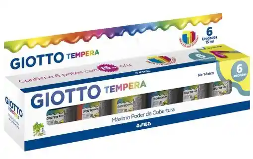 Témpera Guache de 6 Colores 15ml Giotto. Lavables. No tóxica