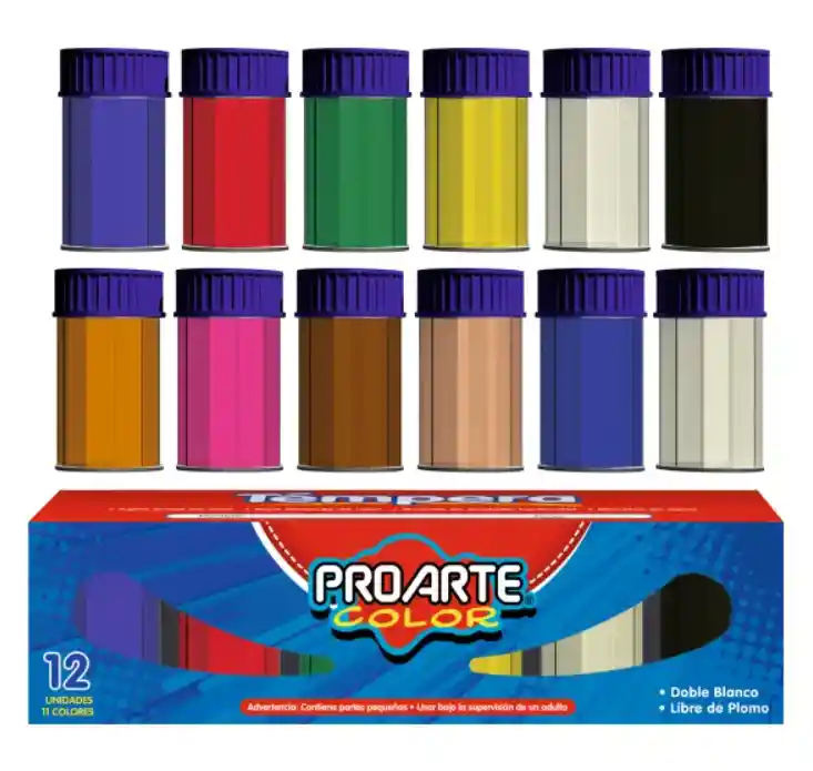 Tempera Proarte 12 unidades, trae doble blanco Libre de plomo