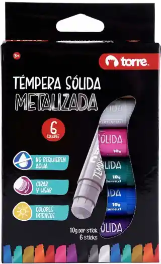 Los colores metálicos siempre brindarán modernidad a tus dibujos y pinturas y estas témperas en formato sólido son ideales para agregar detalles llamativos a cada una de las obras que deseas realizar. Solo gira el stick y aplica directamente.