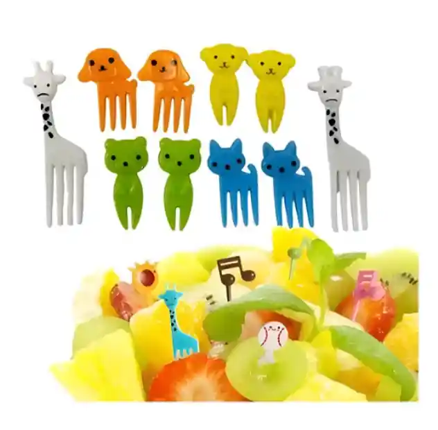 Mini tenedores palillos para postres , frutas y colaciones Has de sus comidas momentos divertidos y coloridos Pack de 10 piezas de animalitos variados