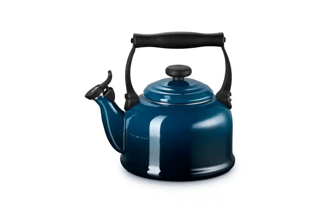 Gran tetera con capacidad de 2,1 litros. Elaborada en acero porcelanizado, es apta para todas las fuentes de calor y gracias al excelente material, calienta eficientemente el contenido. Posee un silbato que indica cuando el agua está lista y su boquilla permite verter de manera fácil y segura.