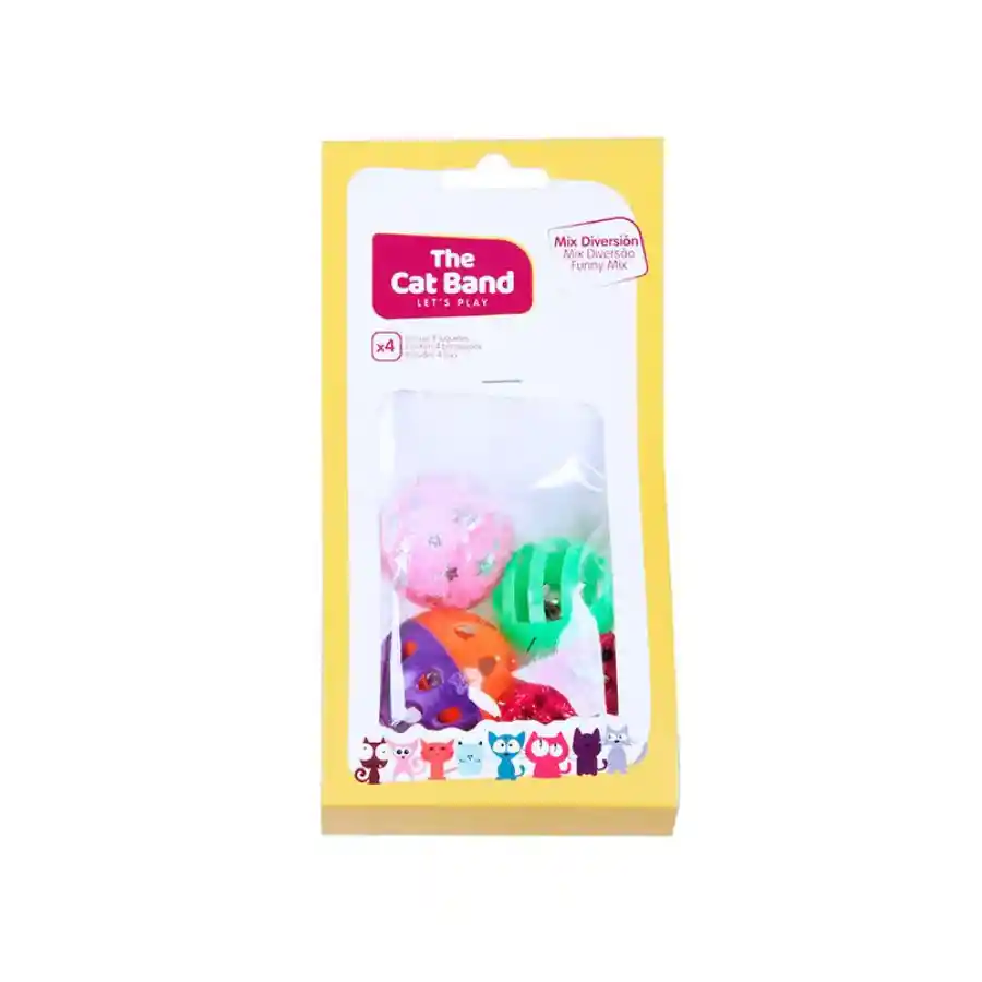 El kit de 4 juguetes The Cat Band Funny Mix incluye tres pelotas —dos de plástico con ranuras y una de tela suave— y un ratón de juguete fabricado con nudos resistentes. Cada pieza ofrece una textura distinta que mantiene a tu gato entretenido mientras persigue, muerde y explora. Gracias a su diseño versátil y materiales duraderos, este set promueve la actividad física, la coordinación y el bienestar mental de tu mascota. Perfecto para gatos de todas las edades, tamaños y razas, este kit de juguetes para gatos es ideal para quienes buscan reforzar el vínculo con su minino y evitar el sedentarismo. Fácil de guardar y de limpiar, cada pieza cabe en cualquier esquina de la casa, convirtiendo el juego diario en una rutina saludable y divertida. Características 3 pelotas y 1 ratón de juguete. Materiales: plástico con ranuras, tela suave y nudos resistentes. Texturas variadas que satisfacen el instinto de caza y el deseo de mordisquear. Estimula el ejercicio físico y la agilidad mental. Apto para gatos de todas las razas, edades y tamaños. Especificaciones Diámetro pelotas: 5 cm Colores: pelotas en naranja, verde y rosa; ratón en rojo Material: plástico, tela y cuerda Con el kit The Cat Band Funny Mix, tu gato disfrutará horas de diversión y ejercicio mientras entrena sus reflejos y mantiene su salud física y mental.