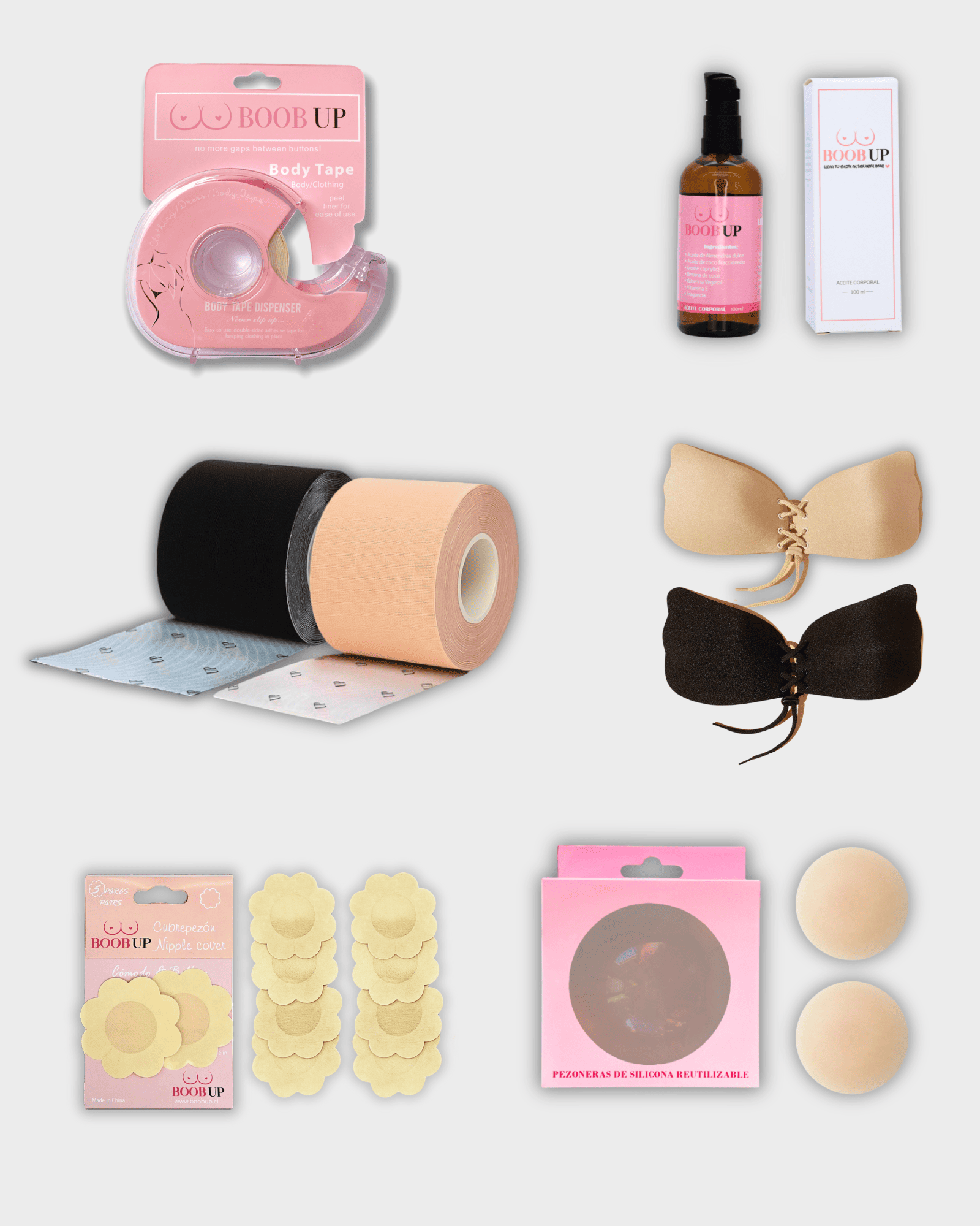<p>¡Descubre "The Perfect Combo," tu clave para un estilo excepcional!Este combo inigualable incluye:🌟 2 Cintas Boob Up - Rollos de 5 metros, uno en color piel y otro en color negro, para elevar y realzar tu busto con versatilidad.🌟 1 pack de cubre pezones (2 pares reutilizables): La solución perfecta para un look sin preocupaciones, una y otra vez.🌟 1 pack de cubre pezones (10 pares desechables): Comodidad y discreción para cualquier ocasión.🌟 2 Sostenes Push Up, uno en color piel y otro en color negro, para un soporte adicional y un escote impresionante.🌟 1 Doble Face Tape: El aliado para mantenerlo todo en su lugar, ¡un look impecable asegurado!🌟 1 Boob Up Oil: Dale a tu piel el brillo y suavidad que se merece, el complemento perfecto para retirar las cintas cuidando al maximo tu piel ✨El valor total de este combo es de $79.990, pero tenemos una oferta que no puedes dejar pasar. Por tiempo limitado, puedes adquirir "The Perfect Combo" a un precio especial de solo $44.990, ¡ahorrando un total de $35.000!No pierdas esta oportunidad única para elevar tu estilo y sentirte segura en cualquier ocasión. "The Perfect Combo" es el paquete definitivo para un look deslumbrante. ¡Hazlo tuyo ahora y prepárate para brillar con confianza! 💫💃</p>