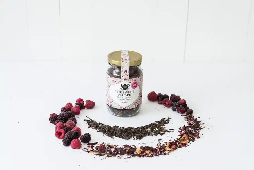Infusión detox. Contiene té rojo Pu-Erh con mix de berries y flores de hibisco. Beneficios: Ayuda a acelerar el metabolismo y el proceso digestivo. CONTENIDO: 120 GRAMOS